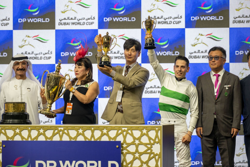 ドバイシーマクラシックを勝利したダノンデサイルと関係者一同 (C)Yushi Machida