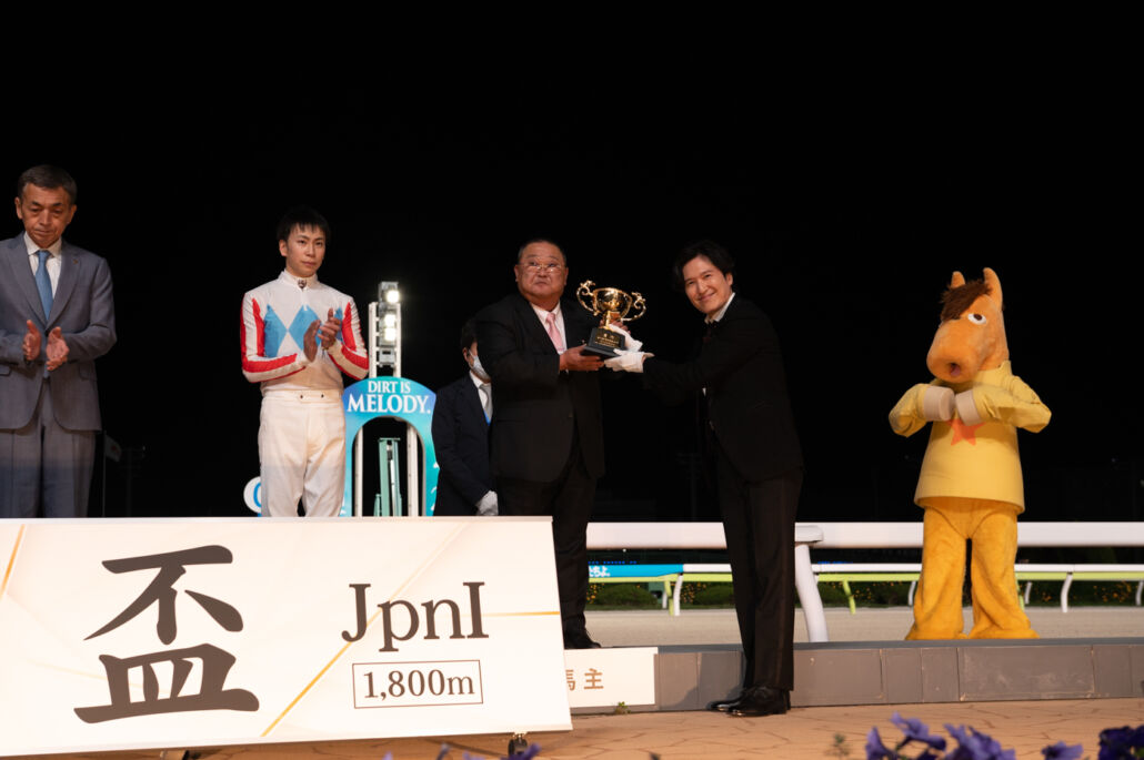 羽田盃を勝利した横山武史騎手と表彰式プレゼンターを務めた清塚信也