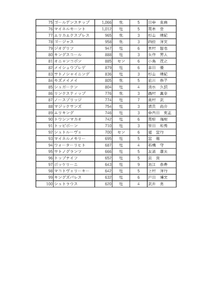 宝塚記念ファン投票:第1回中間結果(75位~100位)
