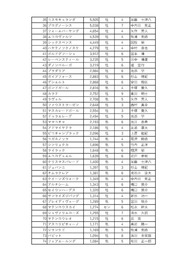 宝塚記念ファン投票:第1回中間結果(35位~74位)