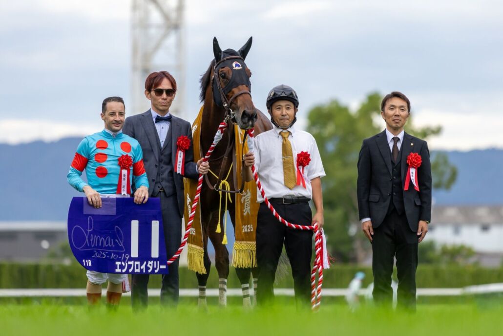 JRA年間プロモーションキャラクターを務める佐々木蔵之介と、秋華賞でエンブロイダリーに騎乗したC.ルメール騎手