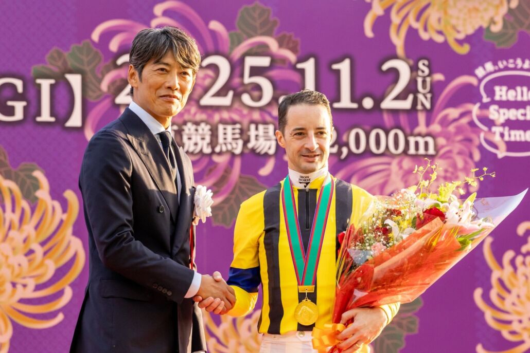 表彰式プレゼンターを務めた反町隆史と、天皇賞・秋でマスカレードボールに騎乗したC.ルメール騎手