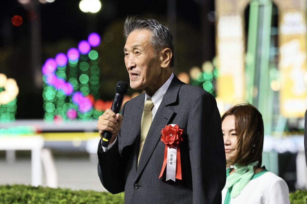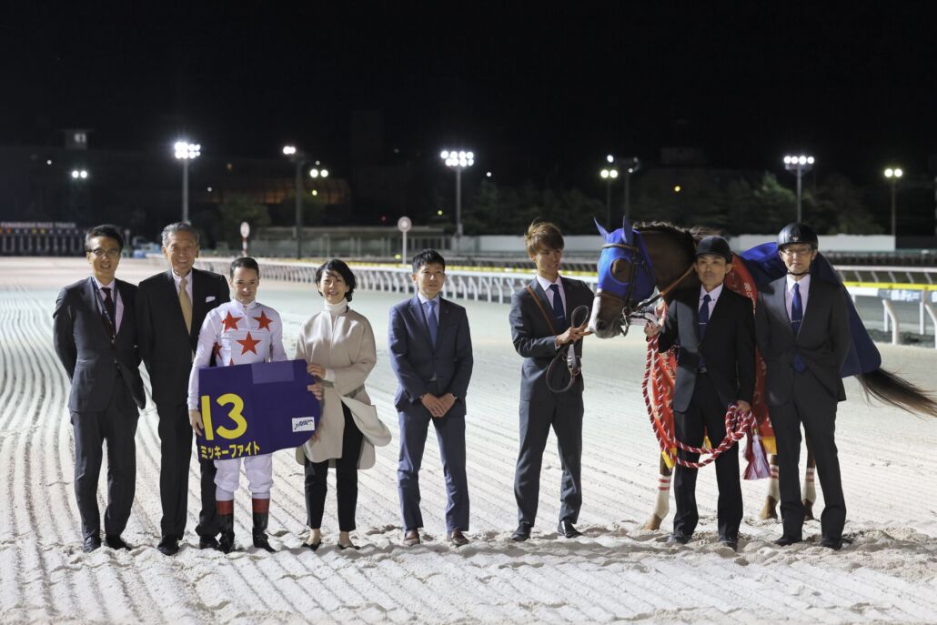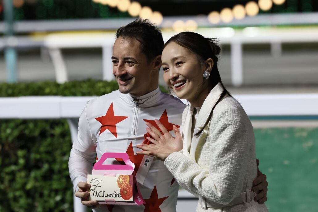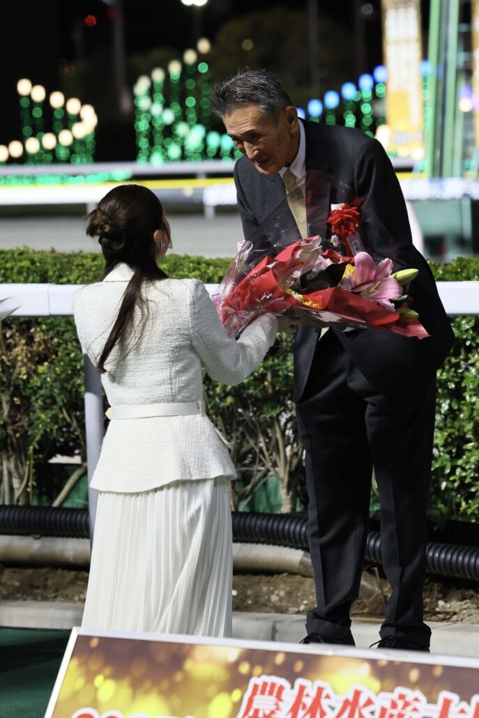 JBCクラシックをミッキーファイトで勝利したC.ルメール騎手と、プレゼンターを務めた百田夏菜子 (C)Hiroki Homma