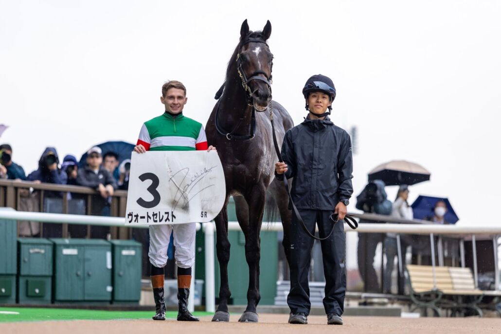 2歳新馬戦・ヴォートセレストとA.プーシャン騎手