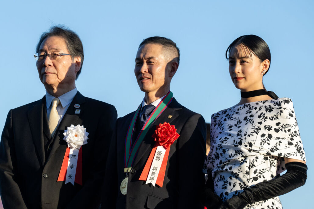 エリザベス女王杯を勝利した戸崎圭太騎手とプレゼンターを務めた俳優の山本美月