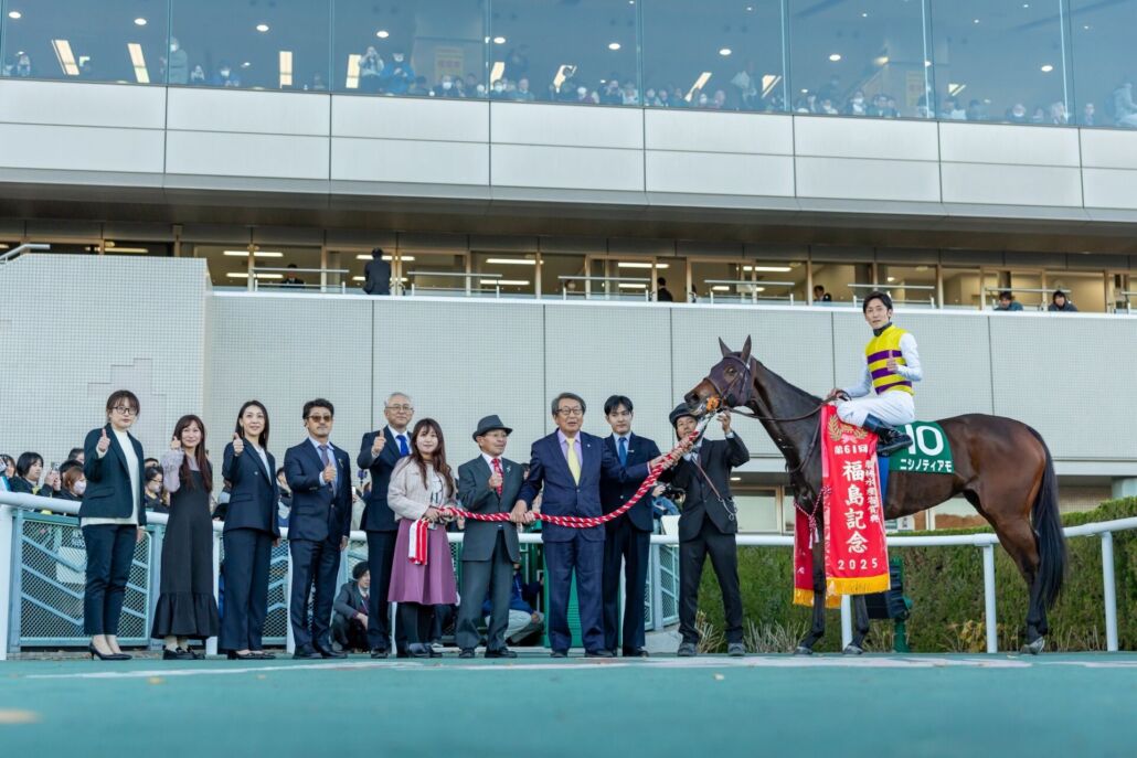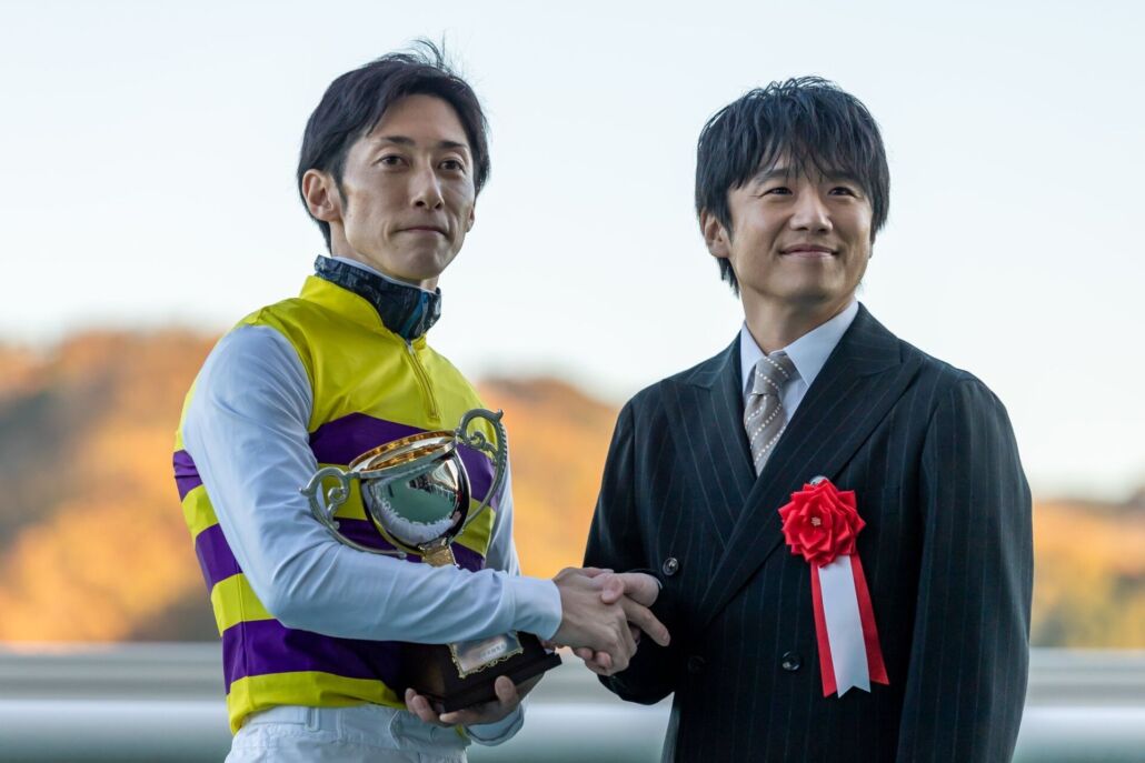 福島記念を勝利した津村明秀騎手とプレゼンターを務めた風間俊介