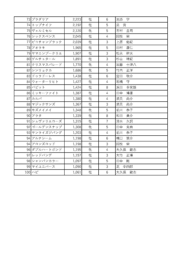 有馬記念ファン投票(73位~100位)