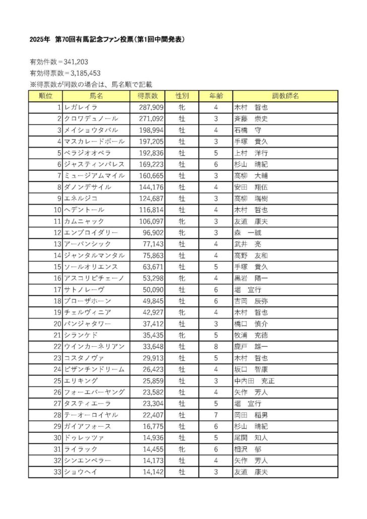 有馬記念ファン投票(1位~33位)