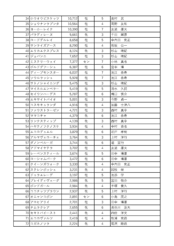 有馬記念ファン投票(34位~72位)
