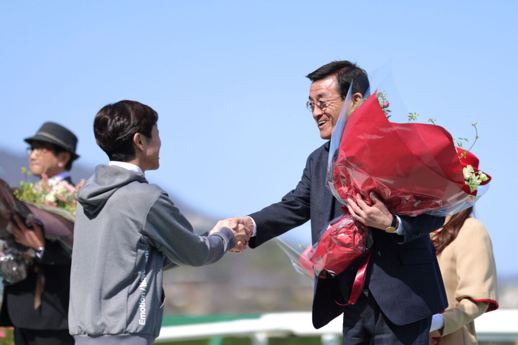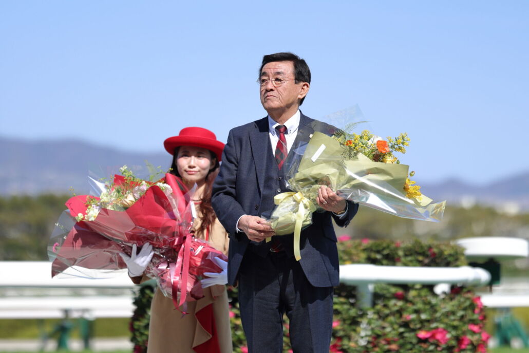 引退調教師への花束贈呈セレモニー(阪神競馬場)