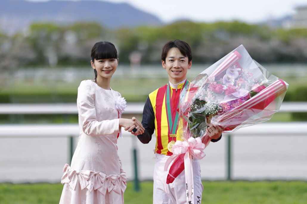 桜花賞を勝利した松山弘平騎手とJRA年間プロモーションキャラクターを務める見上愛