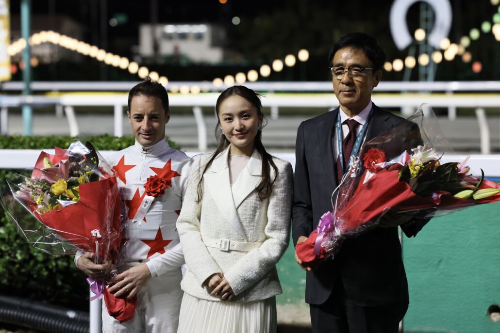 羽田盃を勝利した横山武史騎手と表彰式プレゼンターを務めた清塚信也