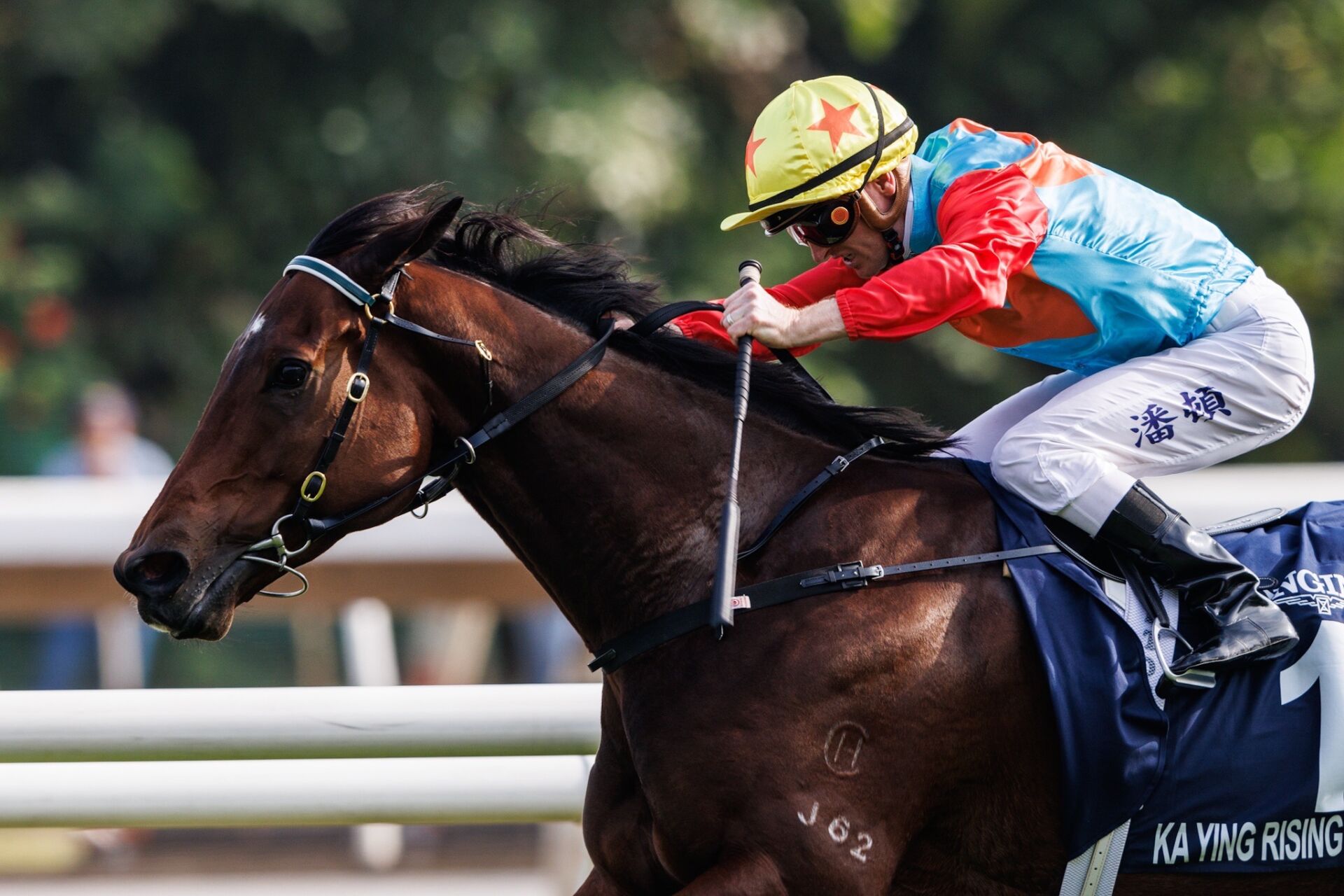 現地時間12月8日、香港・シャティン競馬場で行われた第5R・香港スプリント(G1・3歳上・芝1200m)は、Z.パートン騎乗、カーインライジング(せん4・香・D.ヘイズ)が勝利した。2着にはヘリオスエクスプレス(せん5・香・J.サイズ)、3着には日本馬のサトノレーヴ(牡5・美浦・堀宣行)が入った。勝ちタイムは1:08.15(良)。