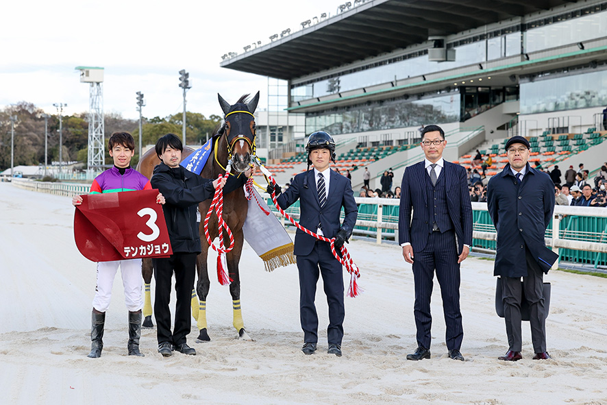松山弘平騎乗のテンカジョウが力強い走りで交流重賞2勝目をマークした。ゲートではやや後手に回る形になったが、鞍上の好判断で素早く巻き返し、レースをつくり直した。前を射程圏に入れる形で進めると、勝負どころでも手応えは良好。直線では鋭脚を繰り出して突き抜けた。「本当に馬が強かったですね。そのひとことです」と松山騎手。