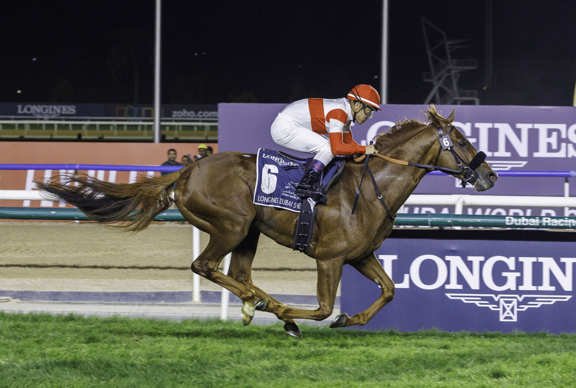 「とても嬉しいです。良いメンバーが揃っているのは認識していましたが、自信を持って臨みました。海外は雰囲気も違ったちょっと興奮気味かなと思いましたが、ゲート入ってからは落ち着いた感じでした。前に有力馬がいるかなと思っていましたので、ついて行って直線では長いのでじっくり行こうかなと思っていました。道中の手応えも良くていつでも弾けそうな感じでした。直線でギアを入れた時はグンと伸びて気持ちよかったです」