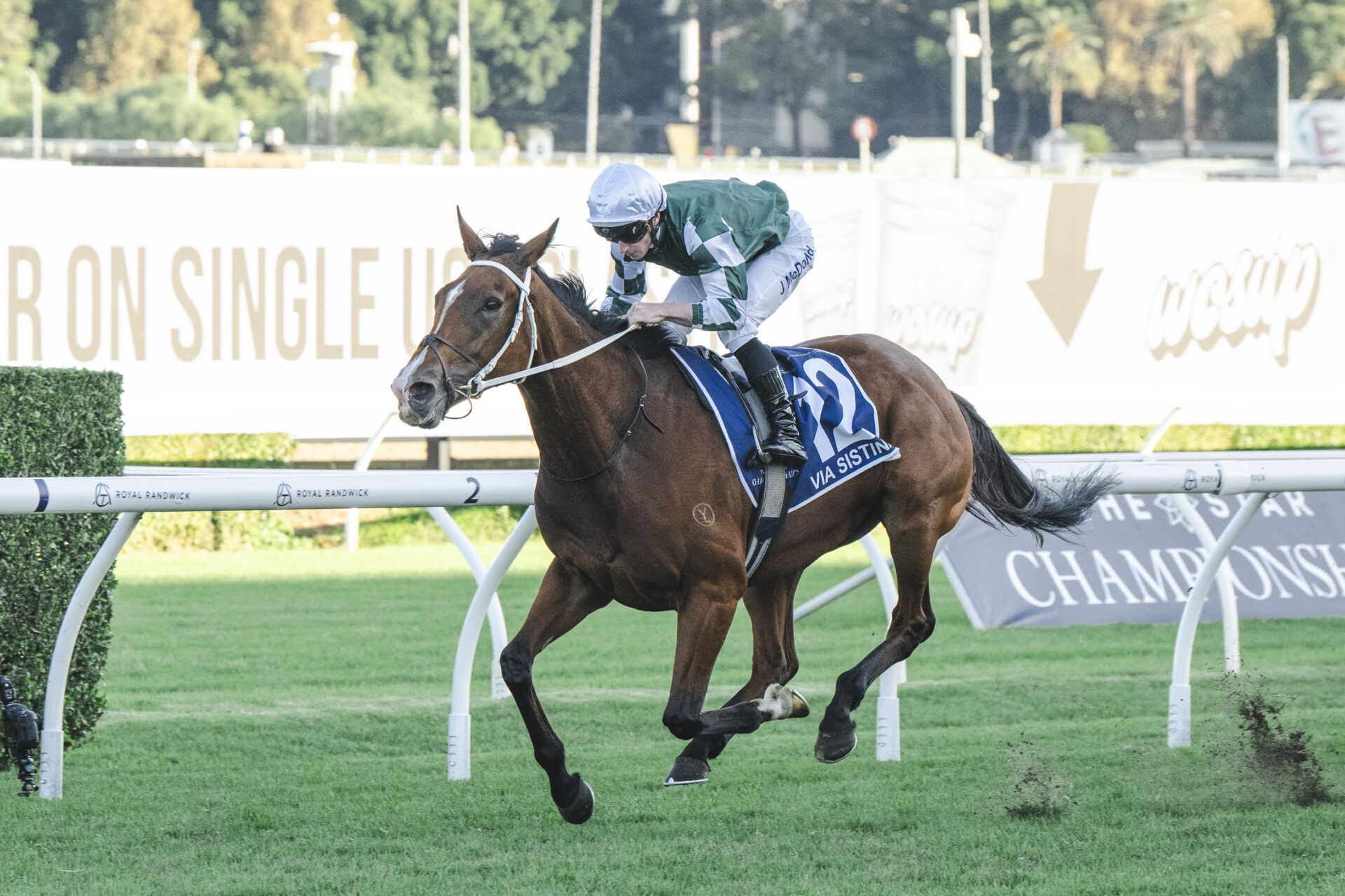 現地時間4月12日、オーストラリアのランドウィック競馬場で行われたクイーンエリザベスステークス(G1・3歳上・芝2000m)でJ.マクドナルド騎乗、ヴィアシスティーナ(牝7・C.ウォーラー)が勝利した。2着にドバイオナー(せん7・W.ハガス)、3着にトムキトゥン(せん4・J.カミングス)が入った。勝ちタイムは2:00.41(稍重)。