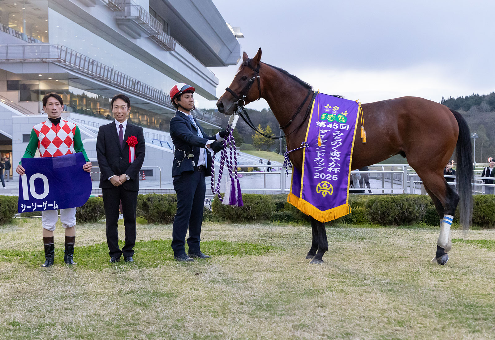 「スタートの一歩目だけが不安だったんですが、枠にも恵まれて、良い位置で運ぶことができました。ペースも緩かったですが折り合いも非常にスムーズで、思った通りの競馬ができました。今日はこの馬のポテンシャル通りの走りができたと思います。レース自体は大人びているなと思っているんですがレース前にね、ちょっとテンション高いところを見せたりしますし、体型もまだ幼いので、そこが変わればもっと走れる馬なんじゃないかと思います。元々JRAの新馬戦を勝っているくらいの馬ですからね。東京ダービーに出走していておかしくない馬だと思っていますし、ここからどういう成長をしていくかではないでしょうか。いつも地方競馬を応援していただいてありがとうございます。これからどんどん面白いレースが増えてきますからね。シーソーゲームと共に応援していただければ嬉しく思います」