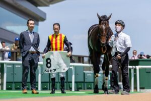 6月21日、東京競馬場で行われた6R・2歳新馬戦(ダ1400m)は、C.ルメール騎乗の3番人気、ペルセア(牝2・美浦・武井亮)が勝利した。クビ差の2着に1番人気のアルカディアカフェ(牡2・美浦・堀宣行)、3着にドナシェーン(牝2・美浦・栗田徹)が入った。勝ちタイムは1:25.1(良)。