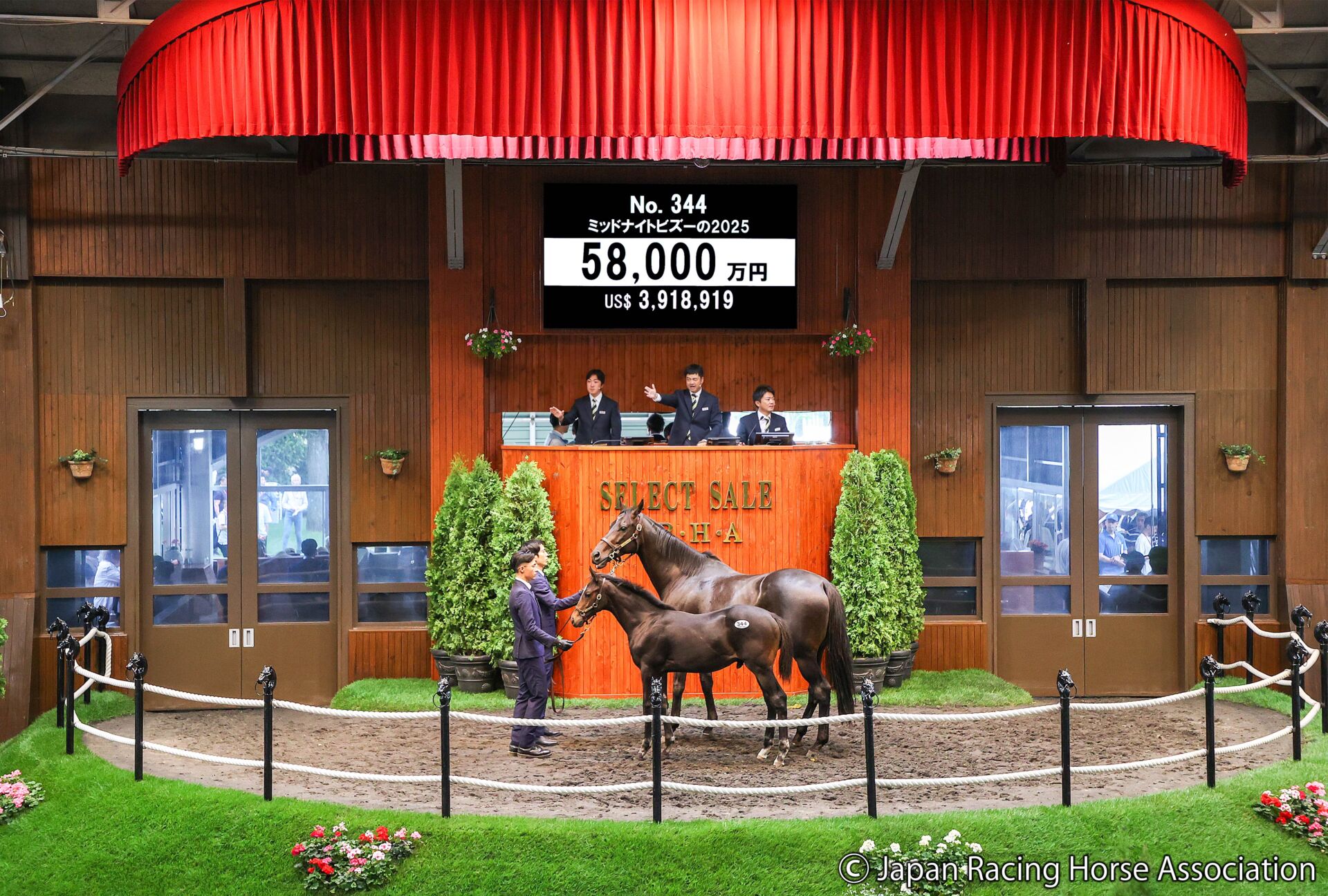 7月15日にノーザンホースパークで行われた「セレクトセール2025」は、2日間の総売上が327億円(昨年比+約38億円)と過去最高を記録し、華々しく幕を閉じた。最終日の当歳馬セールでは240頭が上場され、売上は171億5400万円に到達。1頭あたりの平均価格は7523万円超となり、注目の最高価格はイクイノックス産駒・ミッドナイトビズーの2025(牡)で5億8000万円をマークした。