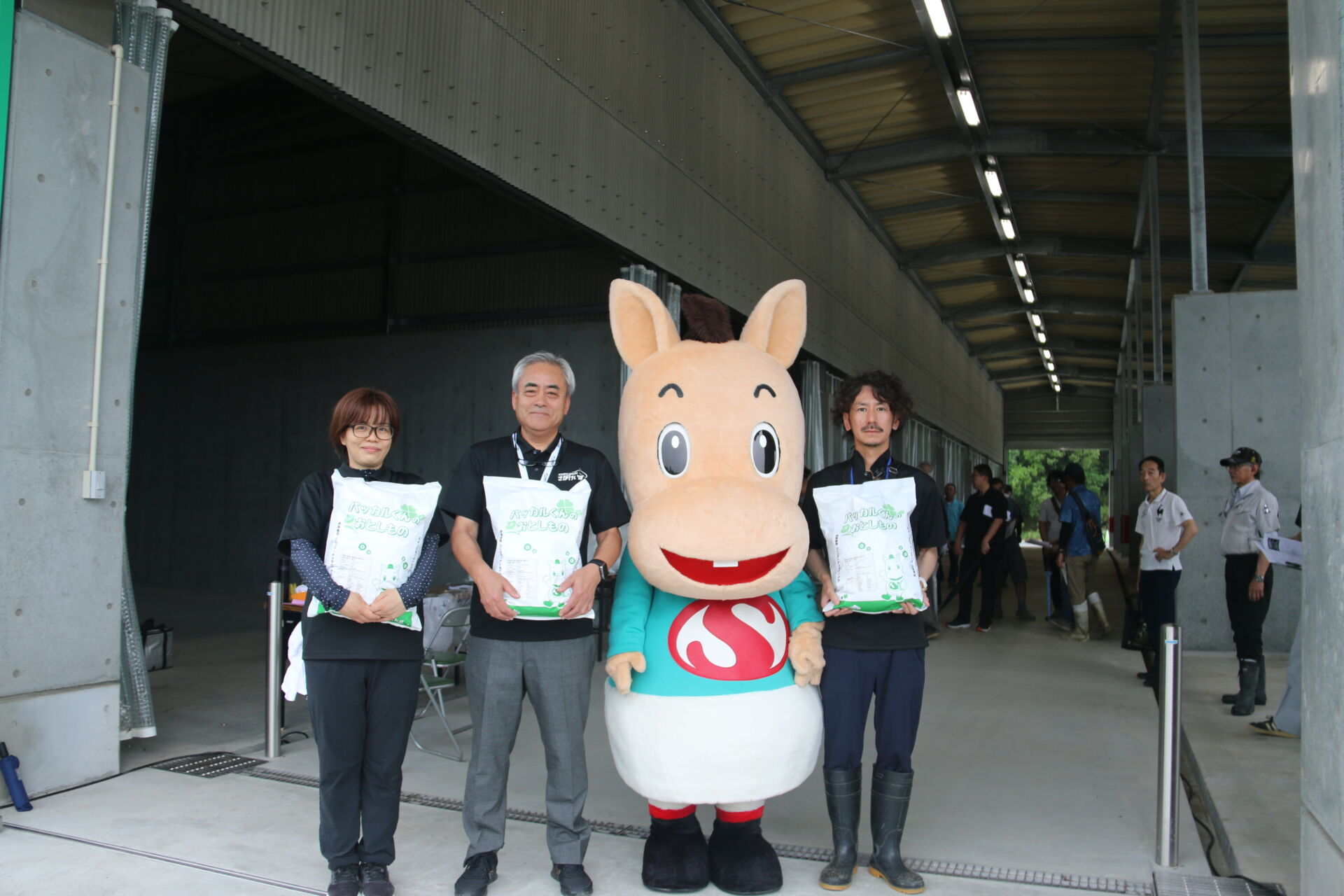 堆肥は土壌改良材として効果的で、4月から馬ふんの搬入が開始され、約3か月の発酵期間を経て完成する仕組み。事前登録した近隣農家には運搬車両での引き取りが可能なほか、特定日には競馬場の来場者に「パッカルくんのおとしもの」というユニークな名前のついた2kg入りの堆肥袋を限定数で無償配布する。