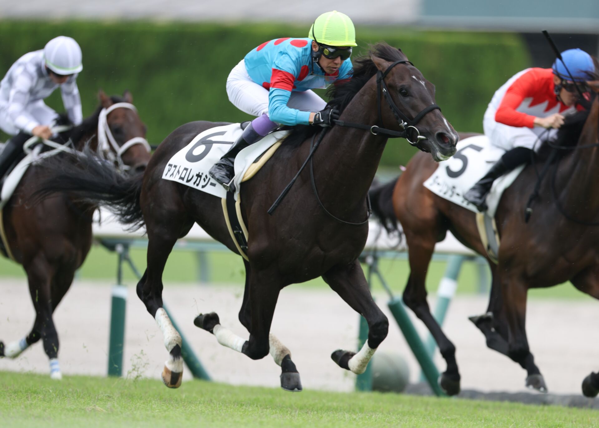 8月10日、中京競馬場で行われた4R・2歳新馬戦(芝2000m)は、武豊騎乗の2番人気、アストロレガシー(牡2・栗東・武英智)が快勝した。1馬身差の2着に1番人気のマテンロウゲイル(牡2・栗東・野中賢二)、3着にマテンロウオリジン(牡2・栗東・坂口智康)が入った。勝ちタイムは2:02.7(良)。