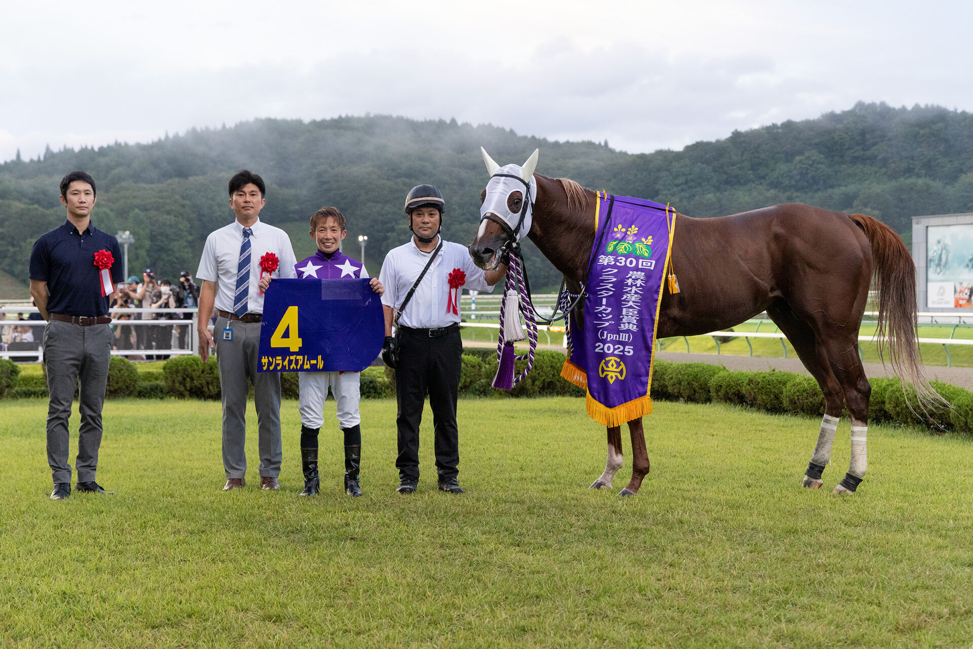8月11日、盛岡競馬場で行われた交流G3・クラスターカップ(ダ1200m)は、JRAのサンライズアムールが逃げ切りV。幸騎手からの代打騎乗となった地元の高松亮騎手が勝利に導いた。