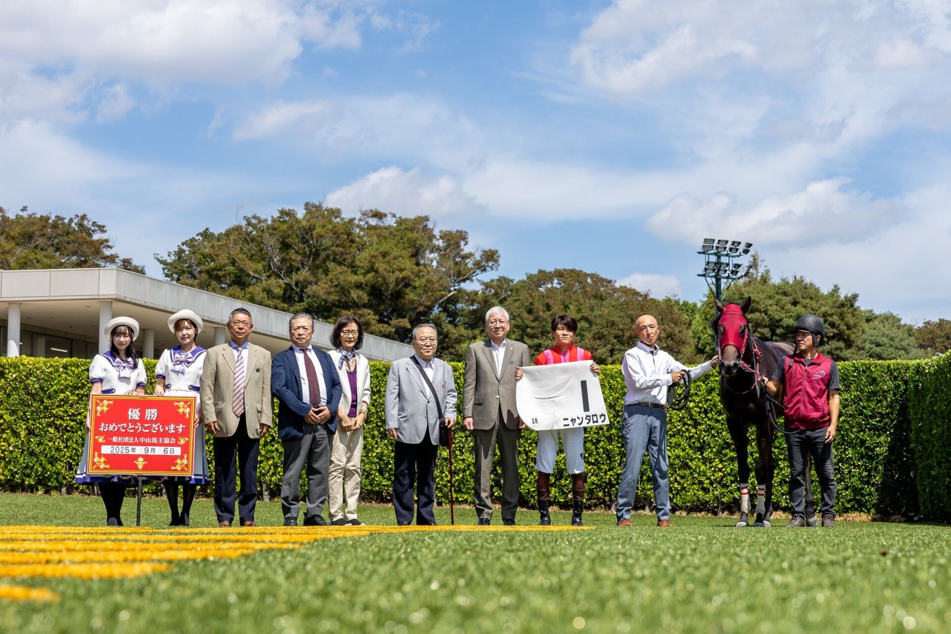 9月6日、中山競馬場で行われた3R・2歳未勝利(ダ1800m)は、三浦皇成騎乗の1番人気、ニャンタロウ(牡2・美浦・武市康男)が快勝した。5馬身差の2着に2番人気のアドフランマム(牡2・栗東・本田優)、3着にライトアファイア(牡2・美浦・伊藤圭三)が入った。勝ちタイムは1:55.1(重)。