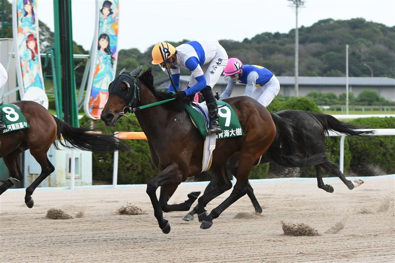 ダート1400mで行われた第1戦は、松本一心騎手(笠松)騎乗のイエヤスがスタート後先頭に立つと、そのまま後続を突き放して勝利。2着は高杉吏麒騎手(JRA)騎乗のジュエリーオブラヴ、3着には吉村誠之助騎手(JRA)騎乗のマリノルルワが入った。