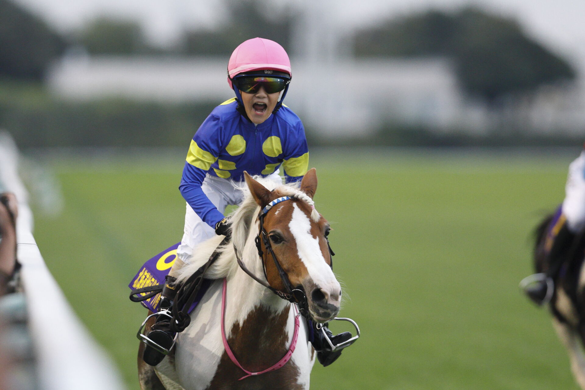 10月12日、東京競馬場の最終レース終了後に、全国ポ二一競馬選手権の決勝大会「第15回ジョッキーベイビーズ」(芝・直線400m)が行われ、全国の小中学性8名が参加した。優勝したのは北海道地区代表の中学1年生・八嶋駿吏(やしましゅんり)さん(13)だった。
