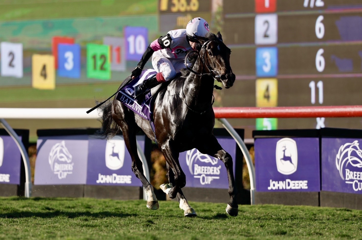 また、殊勲のオイシン・マーフィー騎手は、「前走(カラ競馬場)はやや疲れがあったのかもしれませんが、能力のある馬です。1コーナーで内に潜り込めたことが大きかったですね。直線で外へ行かず内を選んだのは、馬自身にパワーがあったからです。本当に素晴らしいアスリートです」と同馬の走りを称賛。マーフィー騎手にとってはブリーダーズカップシリーズ2勝目となった。