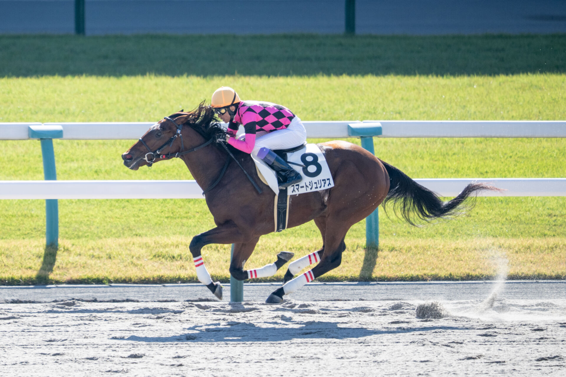 11月15日、京都競馬場で行われた2R・2歳未勝利(ダ1400m)は、武豊騎乗の1番人気、スマートジュリアス(牡2・栗東・中村直也)が快勝した。1.3/4馬身差の2着にアイカンアズーラ(牝2・栗東・河嶋宏樹)、3着にリフラ(牡2・栗東・西村真幸)が入った。勝ちタイムは1:25.0(良)。