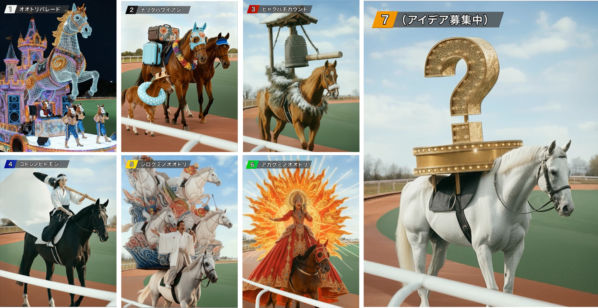 さらに今回は、事前に募集したファンのアイデアをもとに誕生した“7頭目の競走馬”も本編に登場。生成AIならではの表現力を生かした、ファン参加型CMとしても注目される内容となっている。冒頭とラストカットに挿入される実際のレース映像を除き、すべてのカットを生成AIで制作しており、従来の競馬CMの枠を超えた映像表現も見どころだ。