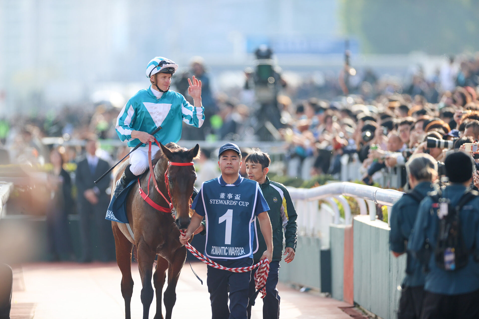 マイル初挑戦のラッキースワイネスが粘って2着。3着にヴォイッジバブル。ロマンチックウォリアーは最後まで余力を残し、1馬身3/4差の完勝だった。これでロマンチックウォリアーはG1通算12勝目。28戦21勝という圧倒的な戦績に、獲得賞金は2億4700万香港ドル超。昨季は海外を転戦し、今季は再び香港路線の主役として戻ってきた。