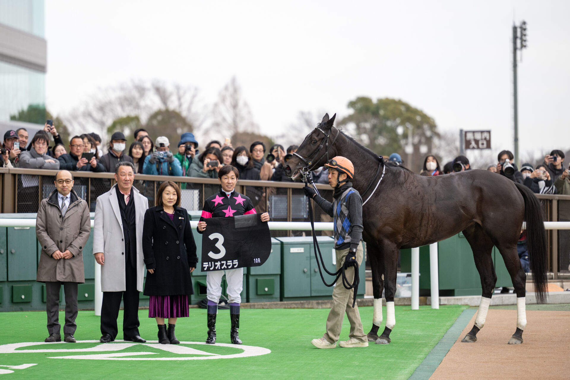 2月10日、東京競馬場で行われた10R・初音ステークス(4歳上3勝クラス・芝1800m)は、武豊騎乗の5番人気、テリオスララ(牝4・美浦・田島俊明)が勝利した。1/2馬身差の2着にルージュソリテール(牝4・栗東・藤原英昭)、3着に2番人気のカニキュル(牝5・美浦・菊沢隆徳)が入った。勝ちタイムは1:45.7(良)。