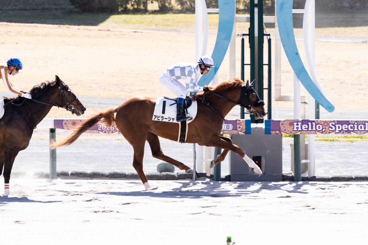 3月14日、中京競馬場で行われた3R・3歳未勝利(ダ1900m)は、浜中俊騎乗の4番人気、アビラー...
