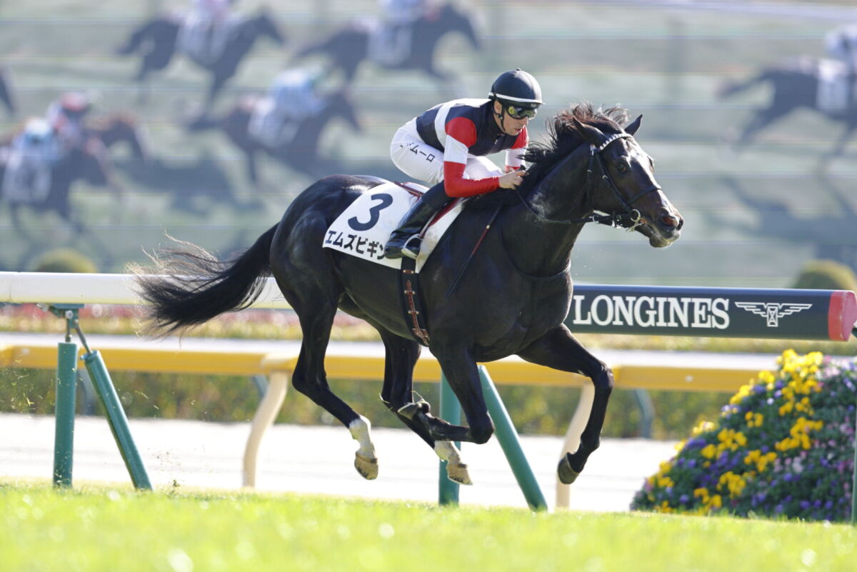 11月24日、東京競馬場で行われた第3Rで、エムズビギン(C.デムーロ騎手)が1着となり、友道康夫...