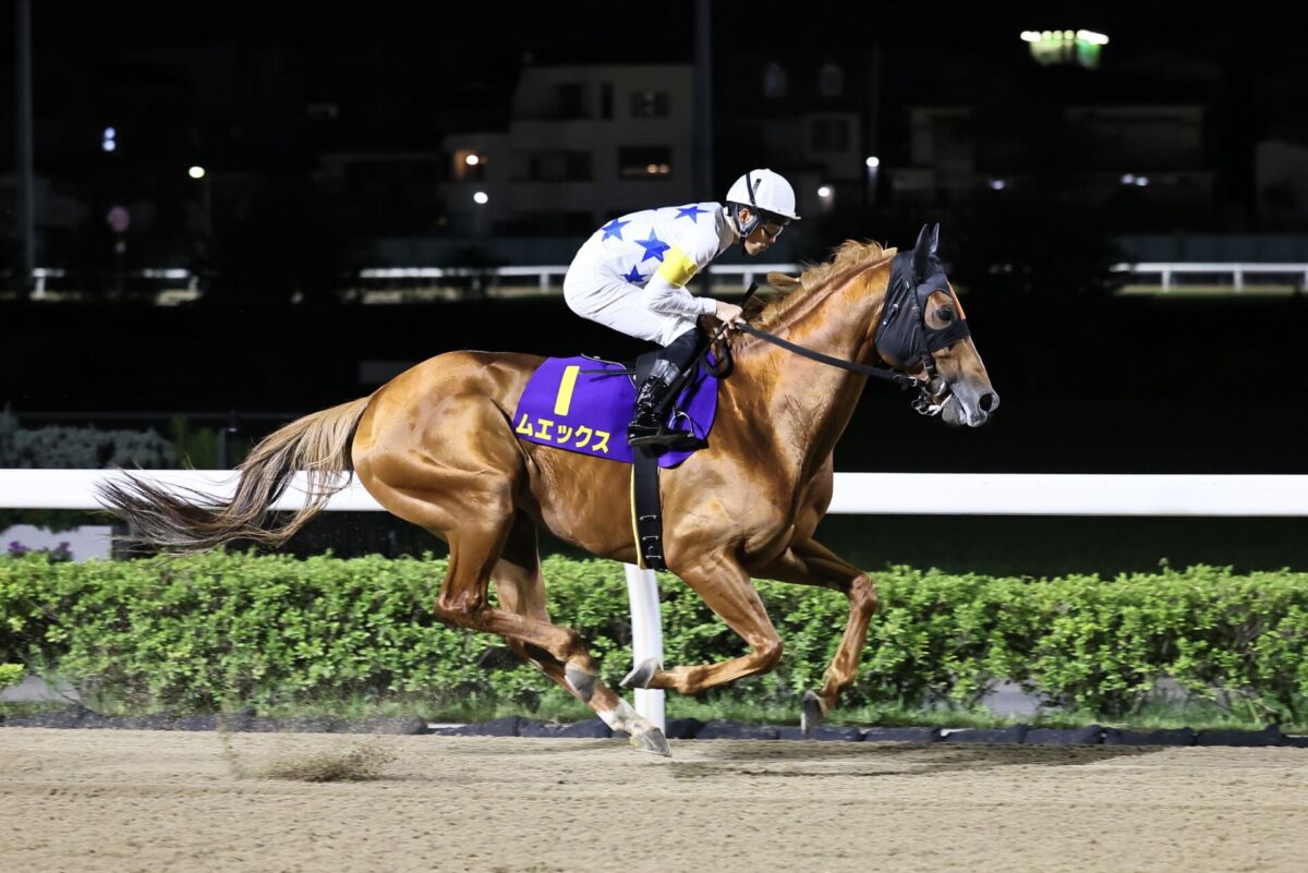 同じコースのさきたま杯では2着に好走していた船橋所属のムエックスだったが、3着までだった。道中は終...